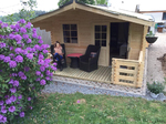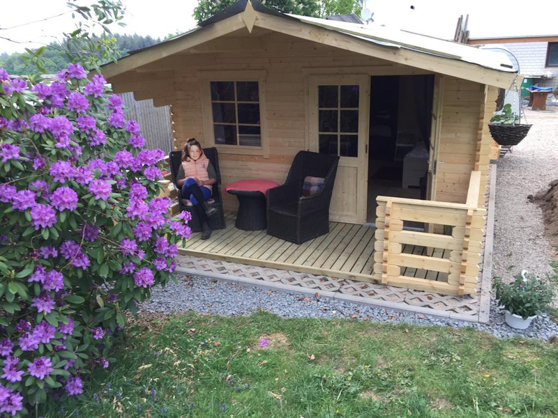 Ihr übernachtet im Gartenhaus oder Wohnwagen.